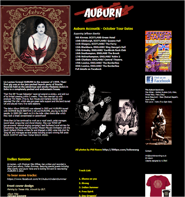 A website for Liz Lenten's band Auburn. "It's all about being grown up, chilled out, relaxed and at a good time of my life." That says it all. Plus some stunning artwork by Teresa Witz.