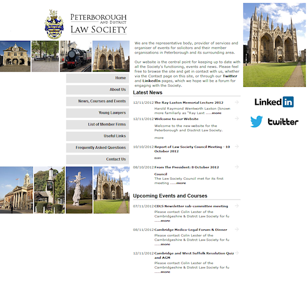 Peterborough and District Law Society. A fully CMS website for members and the public. The sites operators and update events, courses, member solicitors, etc.